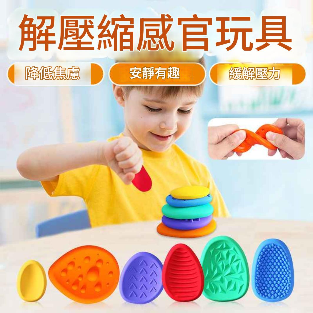 每個感官石都有不同的紋理(波紋、凸點、凹槽、圓點、條紋等),刺激手指感覺,提升觸覺分辨能力與手眼協調。