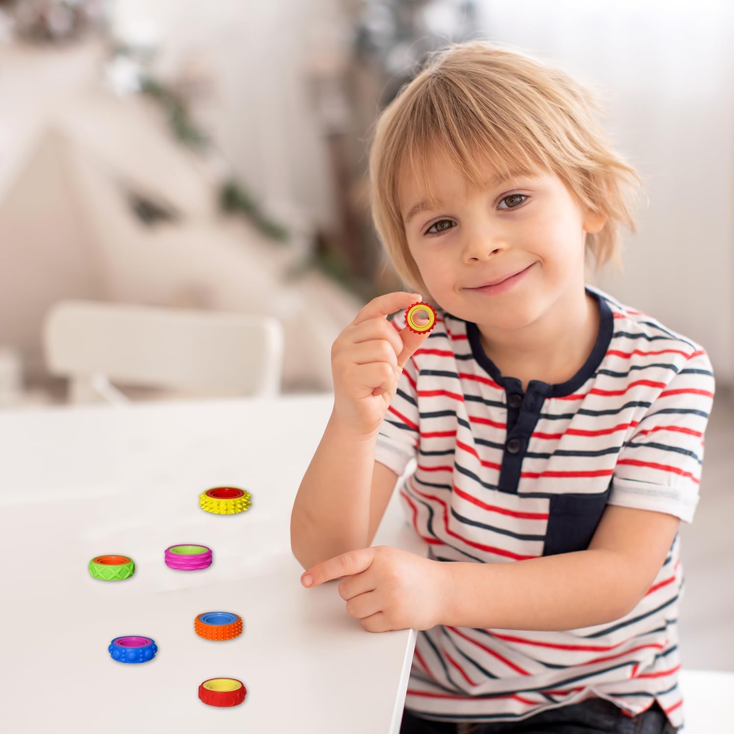 透過轉動指尖環,訓練小朋友的手眼協調、精細動作與反應能力,讓孩子在遊戲中自然培養專注力與耐心。緩解焦慮的有趣坐立不安玩具:這些手指坐立不安感官玩具可以幫助平靜您的神經並緩解壓力,同時還可以增強精細運動技能和手指靈活性。我們的焦慮指尖環由塑料製成的滾動內環和矽膠製成的軟環組成。兒童和青少年不僅可以享受滾動的樂趣,還可以去除紋理環的表面進行拉伸和擠壓