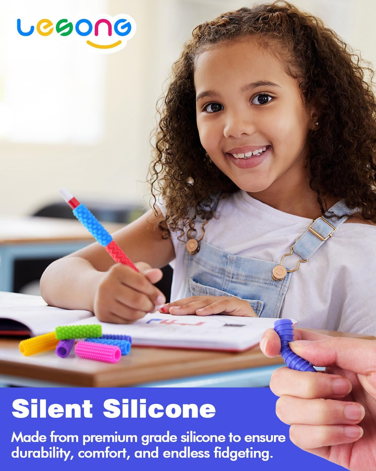 這款 【感官觸覺舒壓筆套】 是歐美教室與辦公室的必備神器!一組 12 入,套在鉛筆或原子筆上,瞬間將書寫工具變成安靜的舒壓玩具!🧘♂️