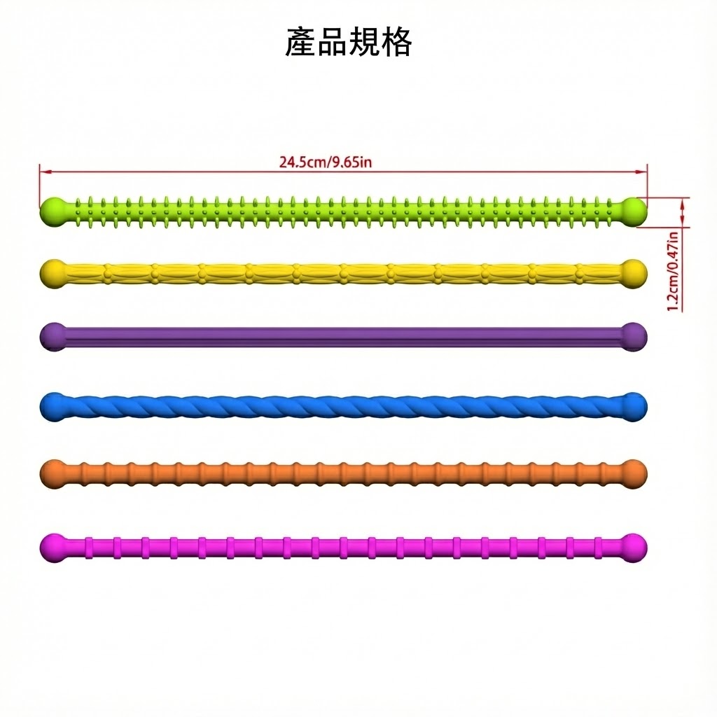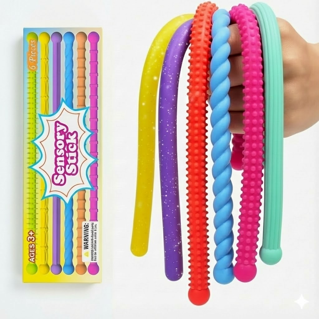 這款全新的**「6入組彩色感官彈力棒」** (Sensory Stick),是專為需要觸覺刺激與提升專注力的大小朋友設計的紓壓神器!