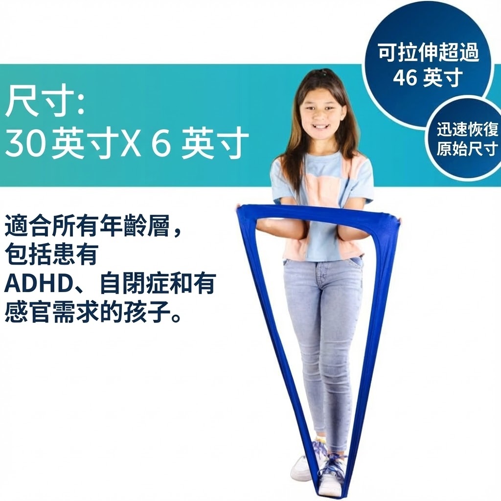 這款【感覺統合彈力伸展帶】專為有感官需求的孩子與成人設計,透過拉、扯、伸展的動作,幫助釋放多餘能量、舒緩情緒,並促進身體協調與專注力發展。